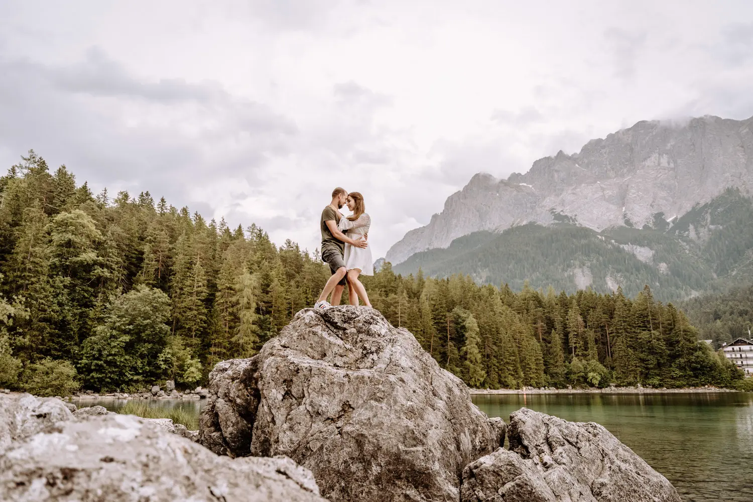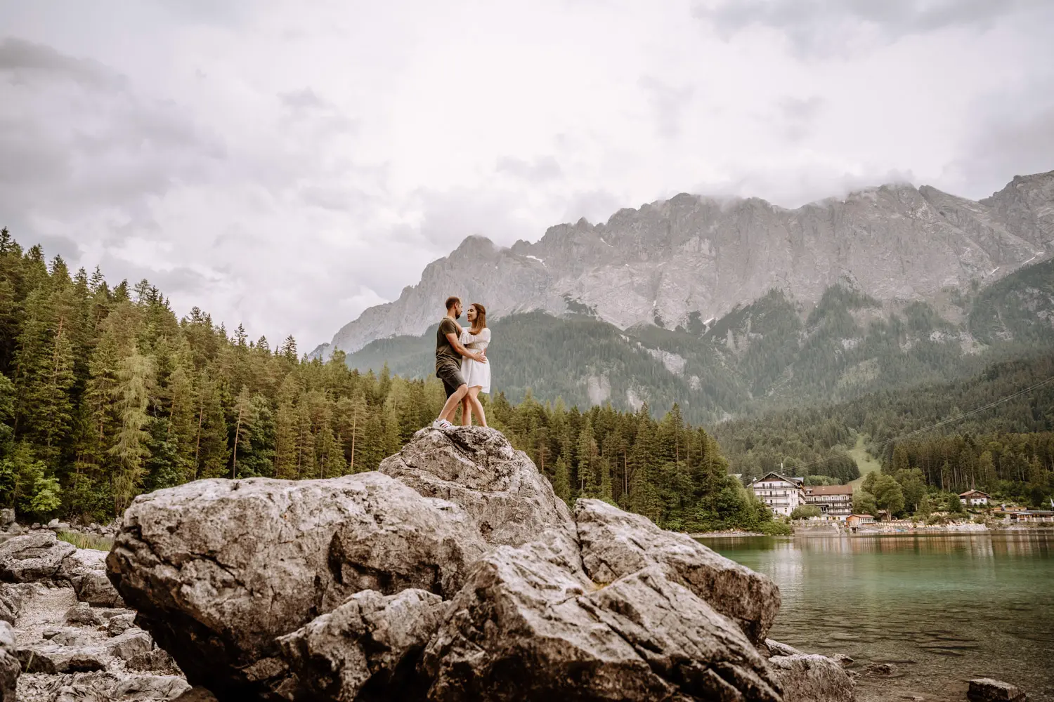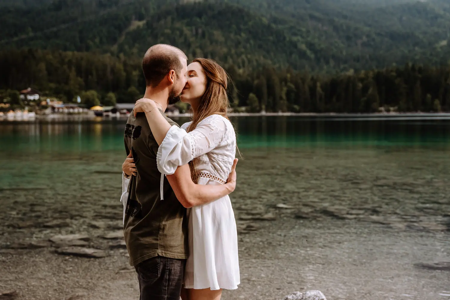 Despite the initial weather drama, our couple shoot at Eibsee went flawlessly. The mood was relaxed and easy, and the nature around us provided the perfect backdrop. It was an unforgettable hour of adventuring together and creating unique memories.