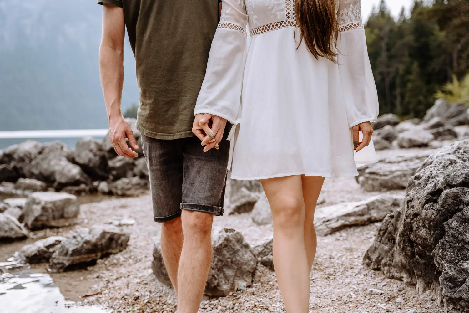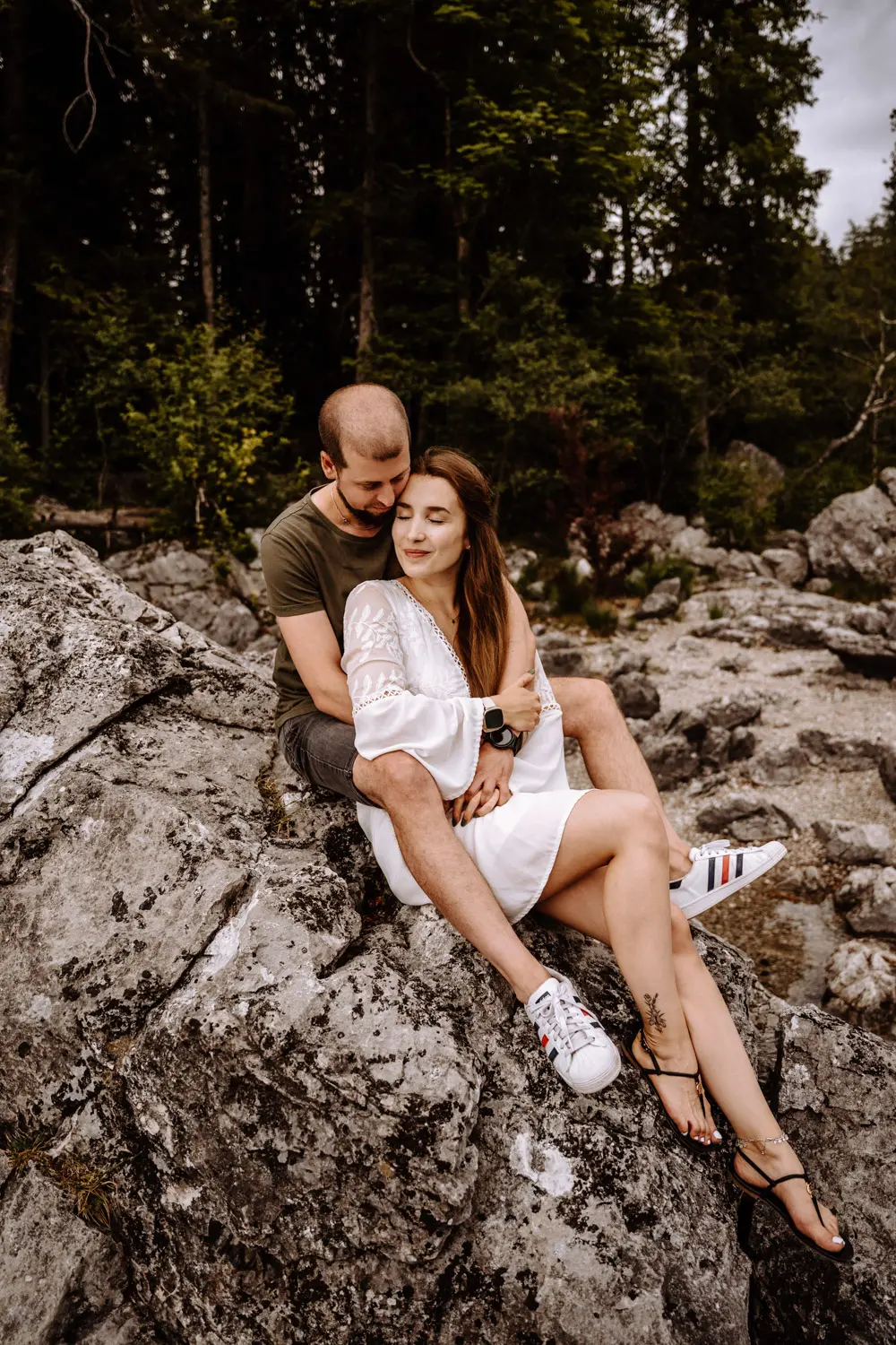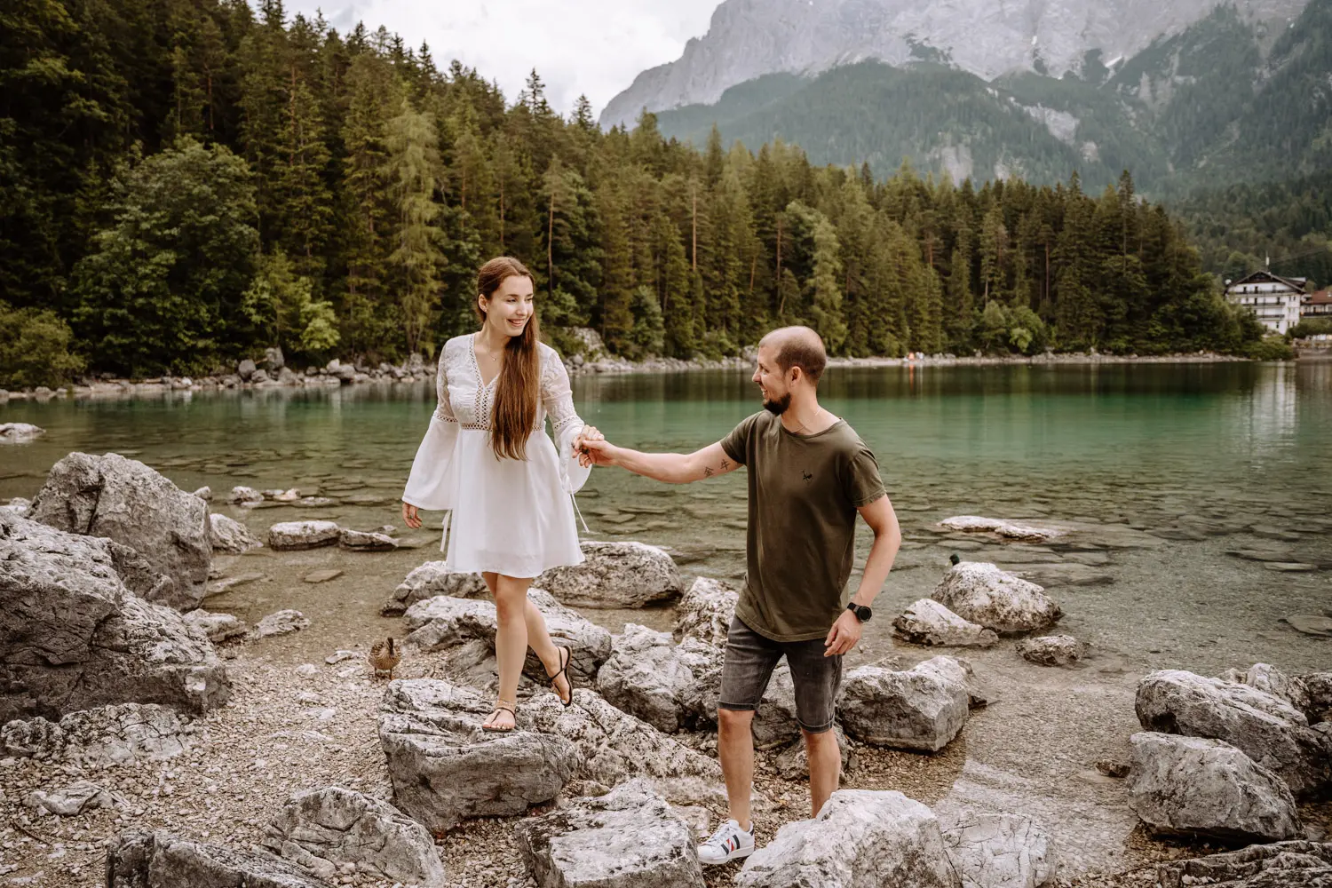Despite the initial weather drama, our couple shoot at Eibsee went flawlessly. The mood was relaxed and easy, and the nature around us provided the perfect backdrop. It was an unforgettable hour of adventuring together and creating unique memories.
